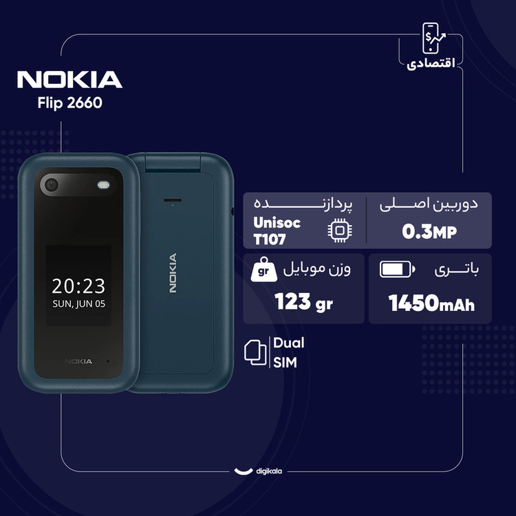 مشخصههای گوشی نوکیا Flip 2660 عبارتست از: