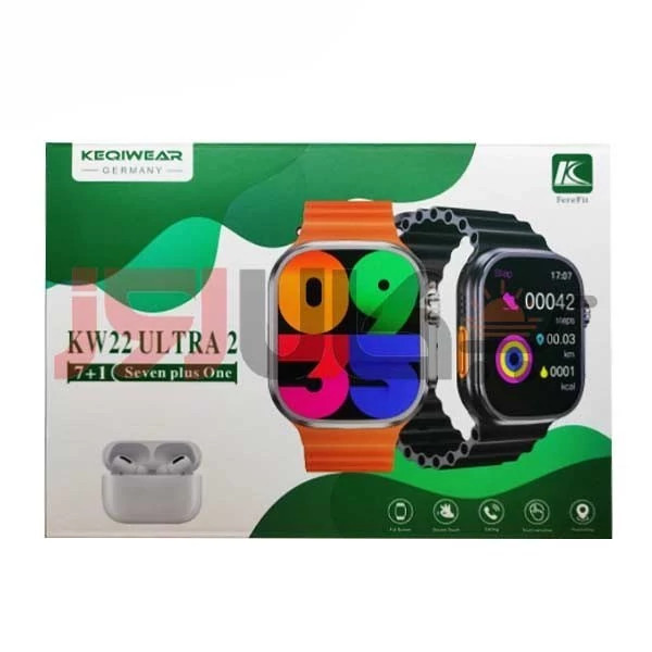 "ساعت هوشمند KW22 Ultra2، همراهی ایدهآل برای سبک زندگی فعال و هوشمند! 🖥️ صفحهنمایش HD 2.01 اینچی: صفحهنمایش بزرگ و با وضوح بالا، اطلاعات را به وضوح و با رنگهای زنده نمایش میدهد. چه در زیر نور آفتاب باشید و چه در شب، صفحهنمایش این ساعت همیشه خوانا و جذاب است. 💧 مقاومت IP68: این ساعت هوشمند در برابر آب، گردوغبار و ضربه مقاوم است. چه در حال شنا باشید یا دویدن زیر باران، نگران آسیب به ساعت نباشید. ❤️ سلامت هوشمند: ضربان قلب: سنسور پیشرفته، ضربان قلب شما را بهطور 24 ساعته بررسی میکند. سطح اکسیژن خون (SpO2): وضعیت تنفسی خود را در هر زمان بررسی کنید. تحلیل خواب: الگوهای خواب شما را تحلیل کرده و راهکارهایی برای بهبود کیفیت استراحت ارائه میدهد. 🏃♂️ ردیابی ورزشی: با پشتیبانی از 30+ حالت ورزشی مانند دویدن، شنا، دوچرخهسواری و یوگا، فعالیتهای خود را بهدقت ردیابی کنید. همچنین، شمارش گامها، مسافت طیشده و کالری سوزاندهشده را در اختیار شما قرار میدهد. 📲 اتصال هوشمند: بلوتوث 5.2: اتصال پایدار و سریع به گوشیهای هوشمند. نوتیفیکیشنها: دریافت اعلانهای تماس، پیامک و شبکههای اجتماعی. کنترل موسیقی و دوربین: موسیقی را کنترل کنید و از دوربین گوشی خود عکس بگیرید. 🎧 ایرپاد پرو رایگان: با خرید این ساعت هوشمند، یک ایرپاد پرو با کیفیت صدای عالی بهصورت رایگان دریافت کنید! این ایرپاد با اتصال سریع و پایدار، همراهی عالی برای موسیقی، تماسها و ورزش شماست. 🔄 7 بند اضافه رایگان: همراه با این ساعت، 7 بند اضافه در رنگها و طرحهای متنوع دریافت میکنید تا بتوانید استایل خود را بهراحتی تغییر دهید. این بندها از جنس باکیفیت و مقاوم ساخته شدهاند و برای هر موقعیتی مناسب هستند. 🔋 باتری با عمر طولانی: با یک بار شارژ، تا 12 روز از این ساعت استفاده کنید. دیگر نیازی به نگرانی درباره شارژ روزانه نیست! 🎯 طراحی سبک و راحت: با وزن کم و طراحی ارگونومیک، این ساعت برای استفاده طولانیمدت در طول روز یا شب کاملاً راحت است. ساعت هوشمند KW22 Ultra2، همراهی مطمئن برای سلامت، تناسب اندام و مدیریت هوشمند زندگی شما!